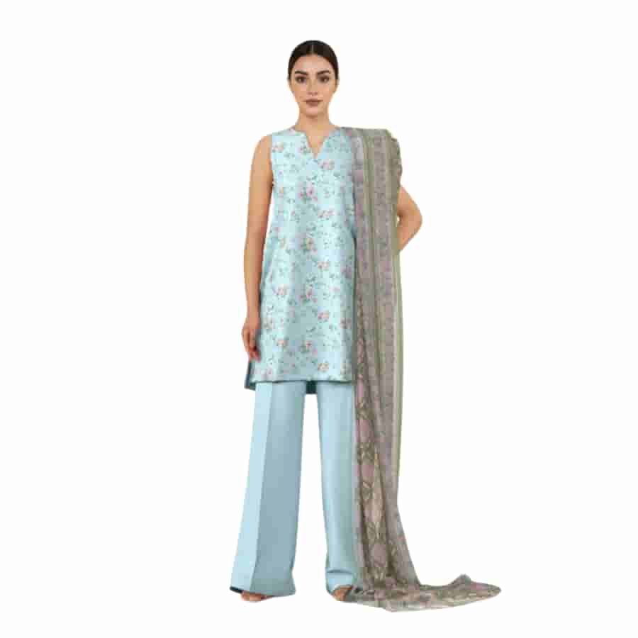 Premium three‑piece unstitched lawn suit from Sapphire’s Summer Lawn collection. Includes a printed lawn shirt, printed voile dupatta, and dyed cotton trouser—each cut with generous lengths for custom stitching. Lightweight, breathable lawn fabric with elegant digital prints, ideal for everyday summer wear, casual outings, or daytime events. Versatile piece allows tailored styling to suit personal taste and fit.